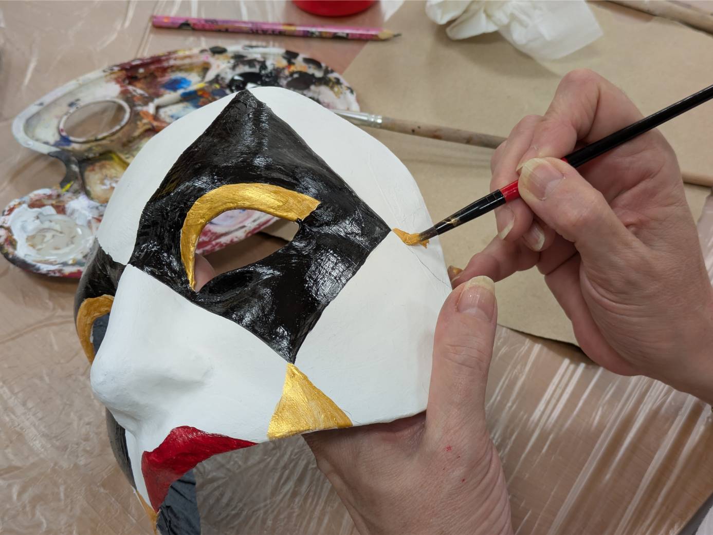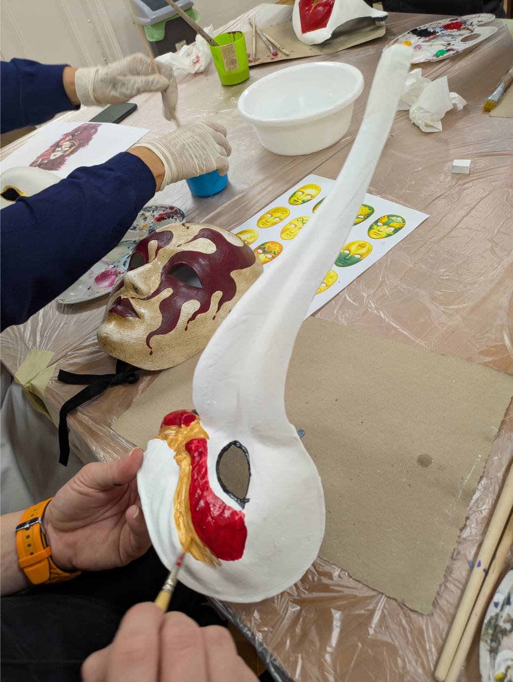Sotto la guida dei Maestri veneziani Franco Gabriele Cecamore (Kartaruga, Castello) e Lucio Lizzul (Pontecavallo, Cannaregio) con la regia dell’Autore Vittorio Baroni, bambini, giovani e adulti hanno imparato le tecniche tradizionali della cartapesta, dando forma ai celebri “volti” veneziani. L’atmosfera del 26 e 27 novembre 2025 è stata quella delle grandi occasioni con mani che modellano, colori che prendono vita, dialoghi che uniscono generazioni e storie personali.